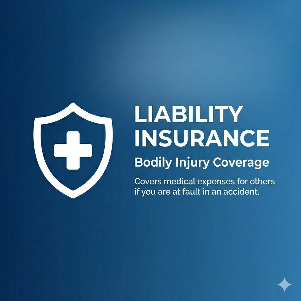 Covers medical expenses for others if you are at fault in an accident. Covers the costs of repairing someone else’s vehicle or property.